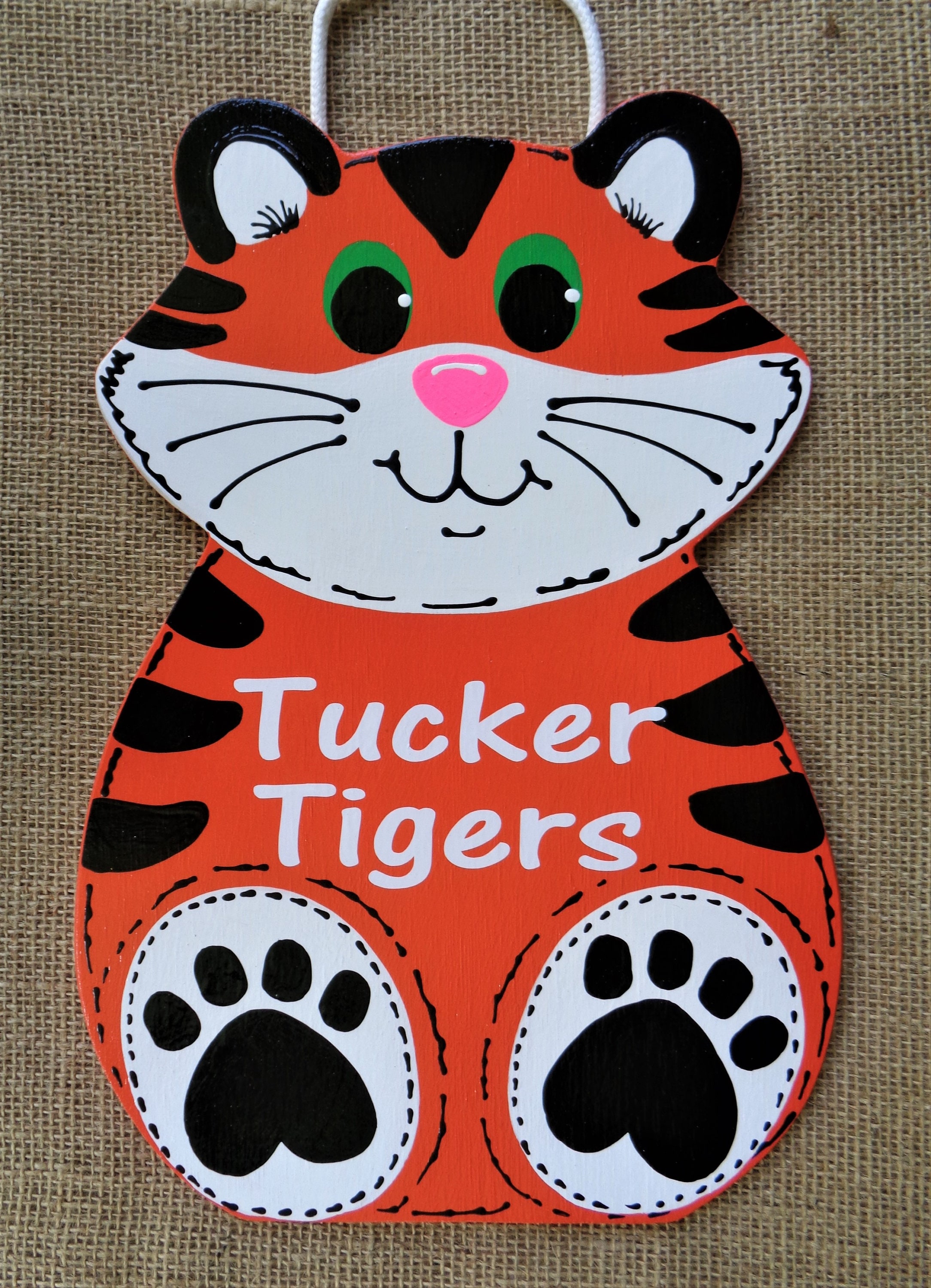 TIGER TEACHER SIGN Pre-School Kindergarten Wall Hanger Plaque Daycare Hand Painted Handcrafted Wood Classroom Class School Aide Door Hanger